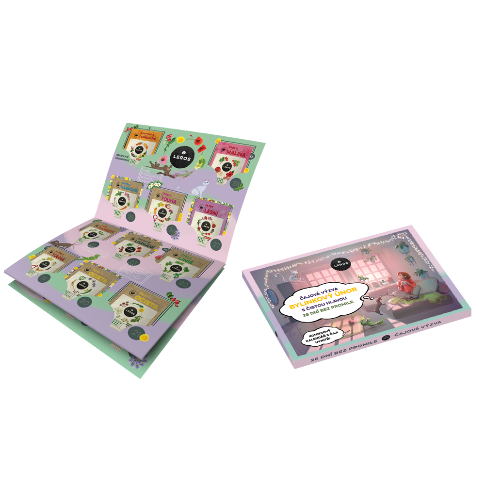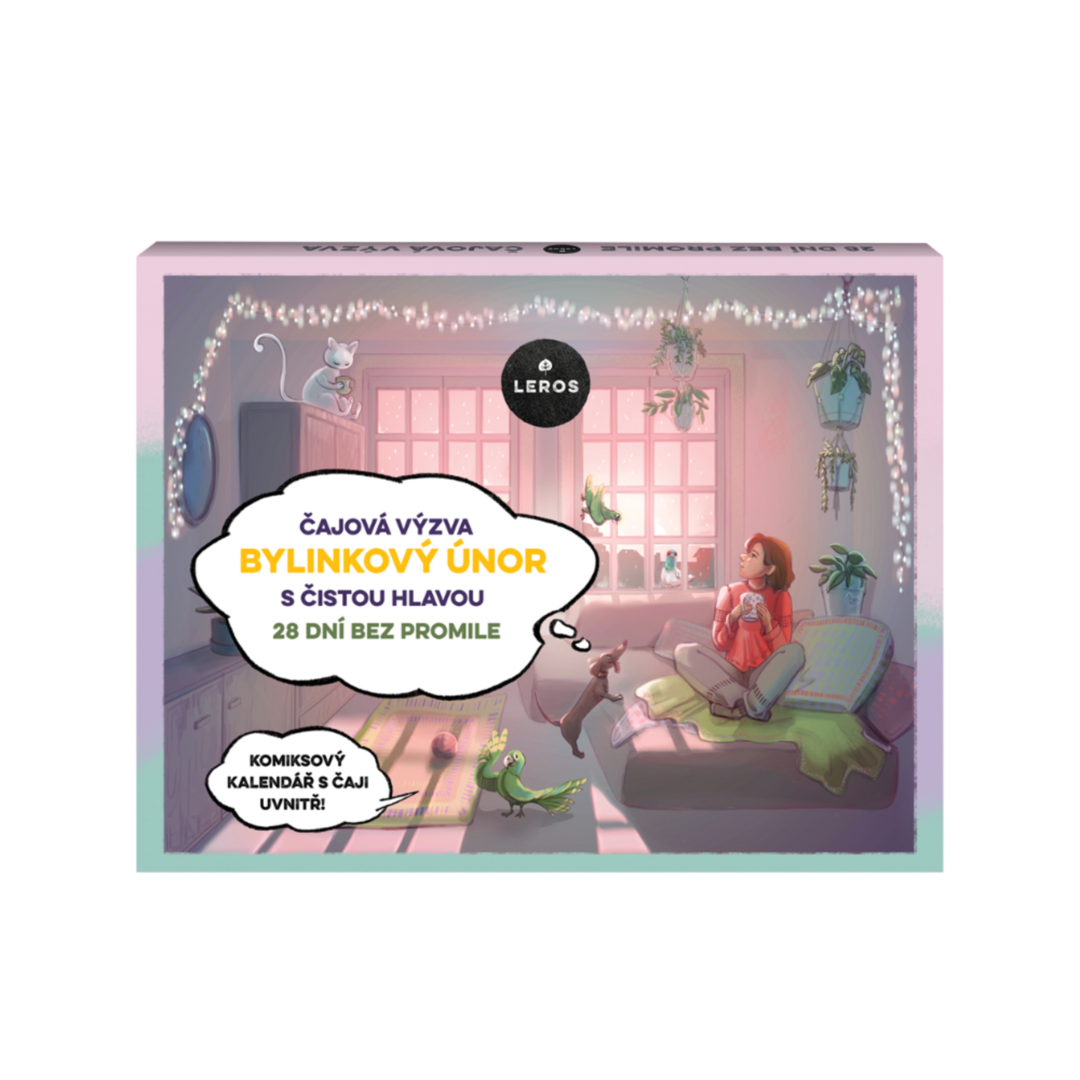 LEROS Čajový kalendář (28 + 1 nálev. sáčků) – Bylinkový únor s čistou hlavou – kalendář s komiksovým příběhem